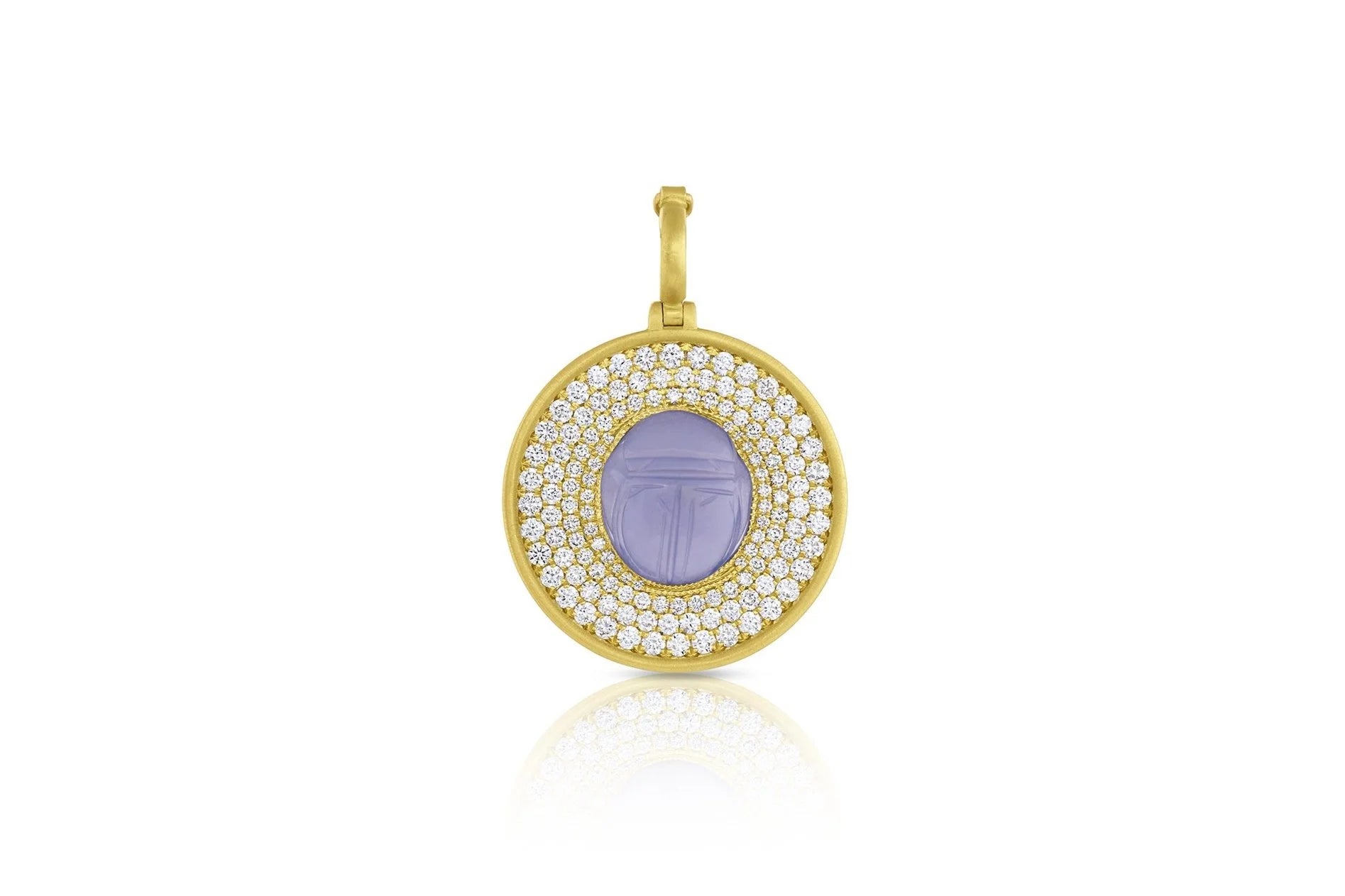 Amani Pavé Pendant - Blue Chalcedony Scarab