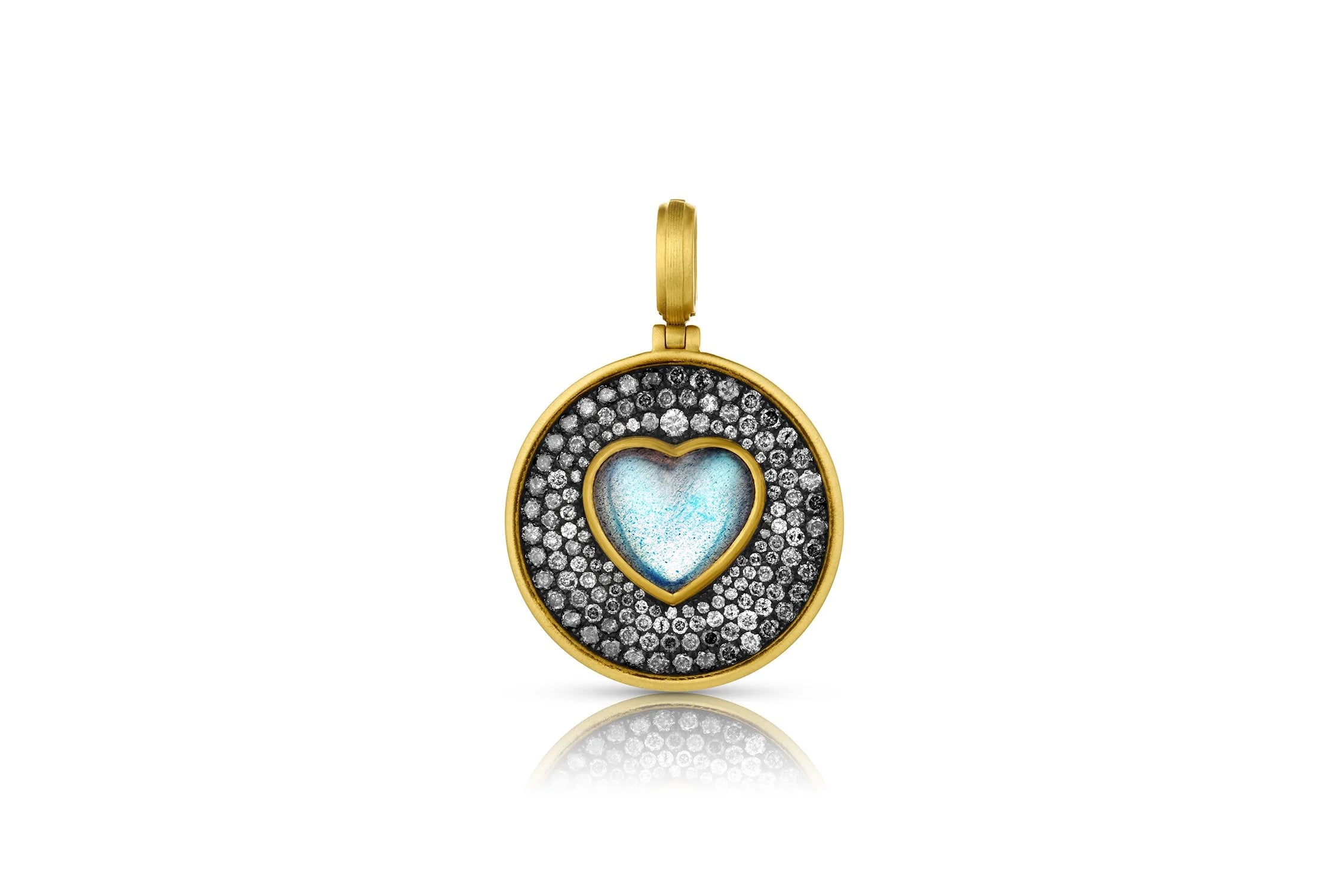 Amani Pavé Disk w/Heart Cabochon - Grey Diamond/Labradorite