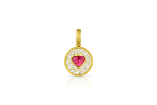 Amani Small Pavé Disk Pendant - Diamond Pavé and Pink Tourmaline Heart