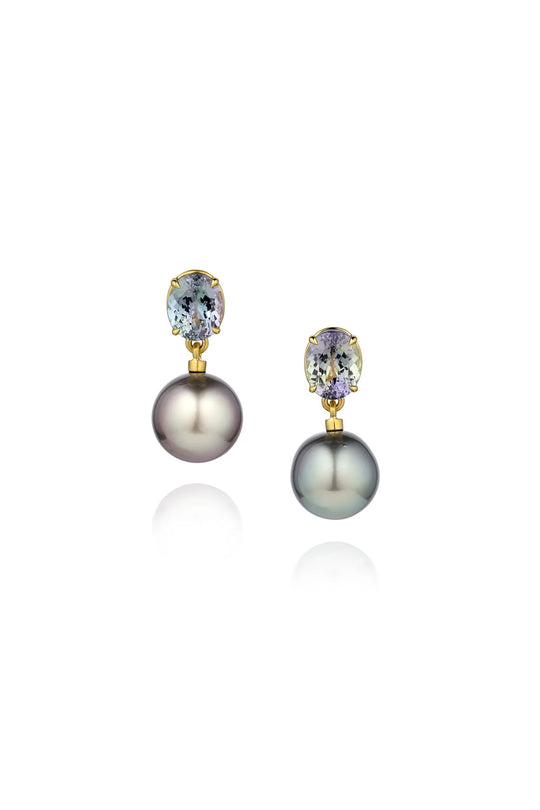 Zoisite & Tahitian Pearl Earrings