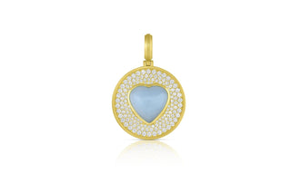 Amani Pavé Disk with Heart Cabochon - Diamond & Aquamarine