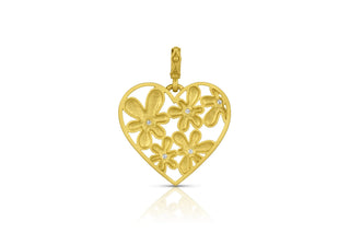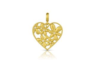 Our best selling Heart Pendant is reimagined for the Flora collection, celebrating the whimsy of the natural world. Flush set diamonds sparkle from the center of the flowers. A gold frame restrains the explosion of blooms.