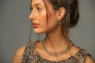 Diamond beads in a soft, neutral palette are a fresh take on the diamond necklace. The subtle sparkle of these diamond beads is captivating. Each strand is one of a kind and finished with a locking clasp.