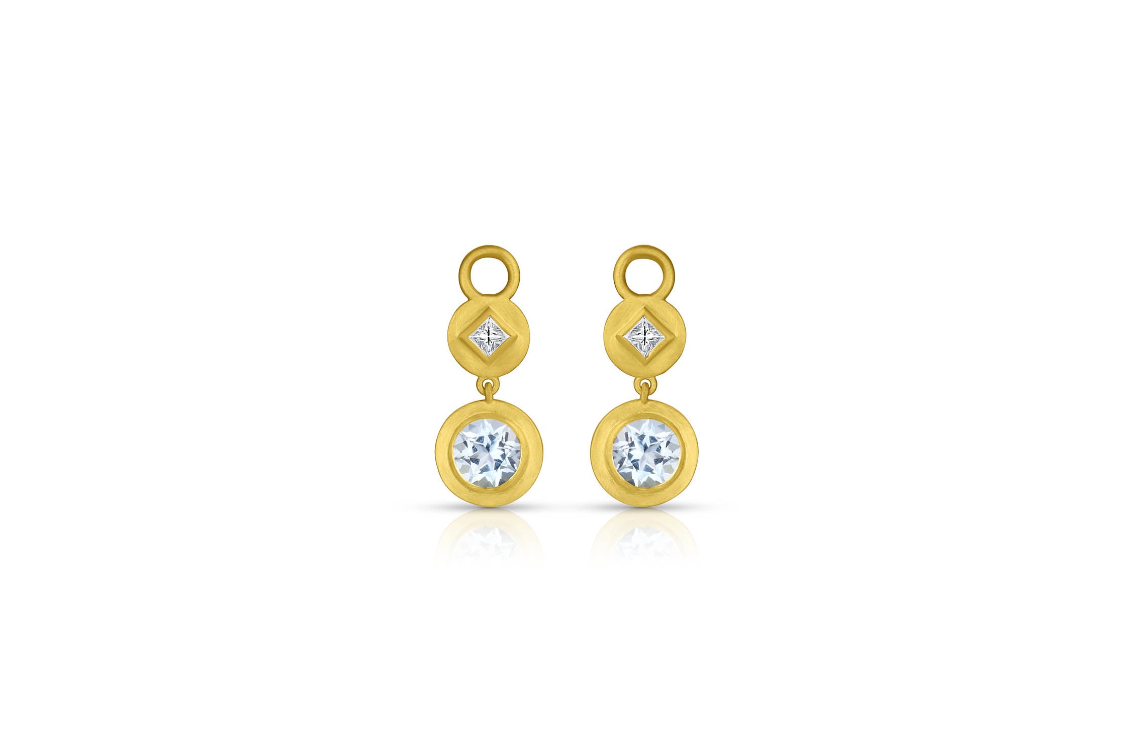 Princess Cut Diamond & Gemstone Earring Charms - Round Aquamarine