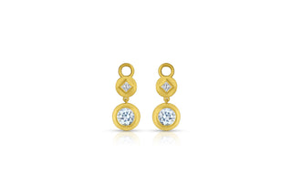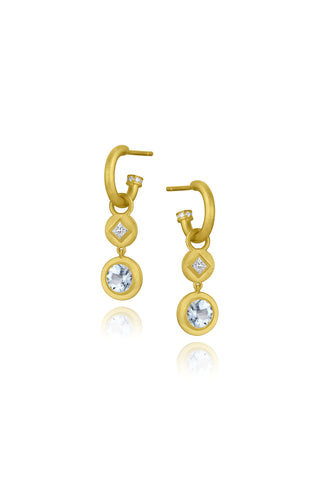 - Princess Cut Diamond & Gemstone Earring Charms - Round Aquamarine