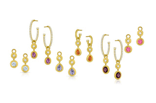 Joyfully colored gemstones sway below princes cut diamonds in these easy wearing earring charms. Due to the nature of natural gemstones, each pair is unique.