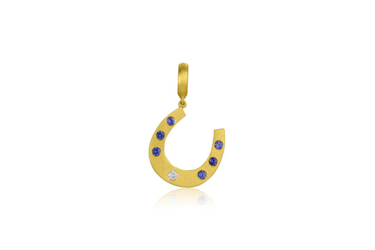 Inspired by Jennifer’s love of horses, this horseshoe pendant features six flush set blue sapphires and a central diamond. An opening bail makes it easy to layer. The horseshoe is, of course, oriented with the ends...Regular price $5,680.00 -