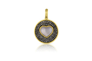 Amani Pavé Disk w/Heart Cabochon - Grey Diamond/Grey Moonstone