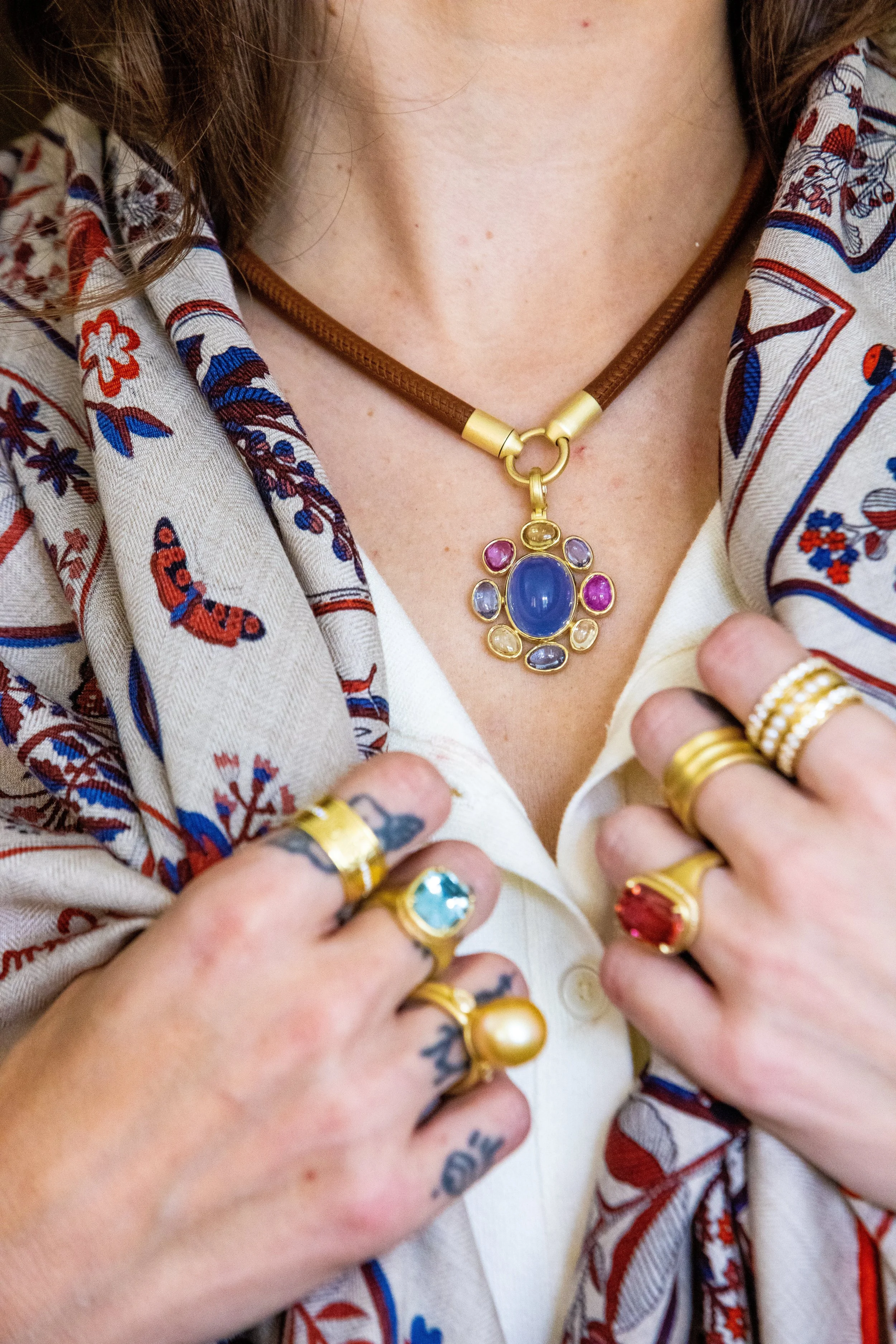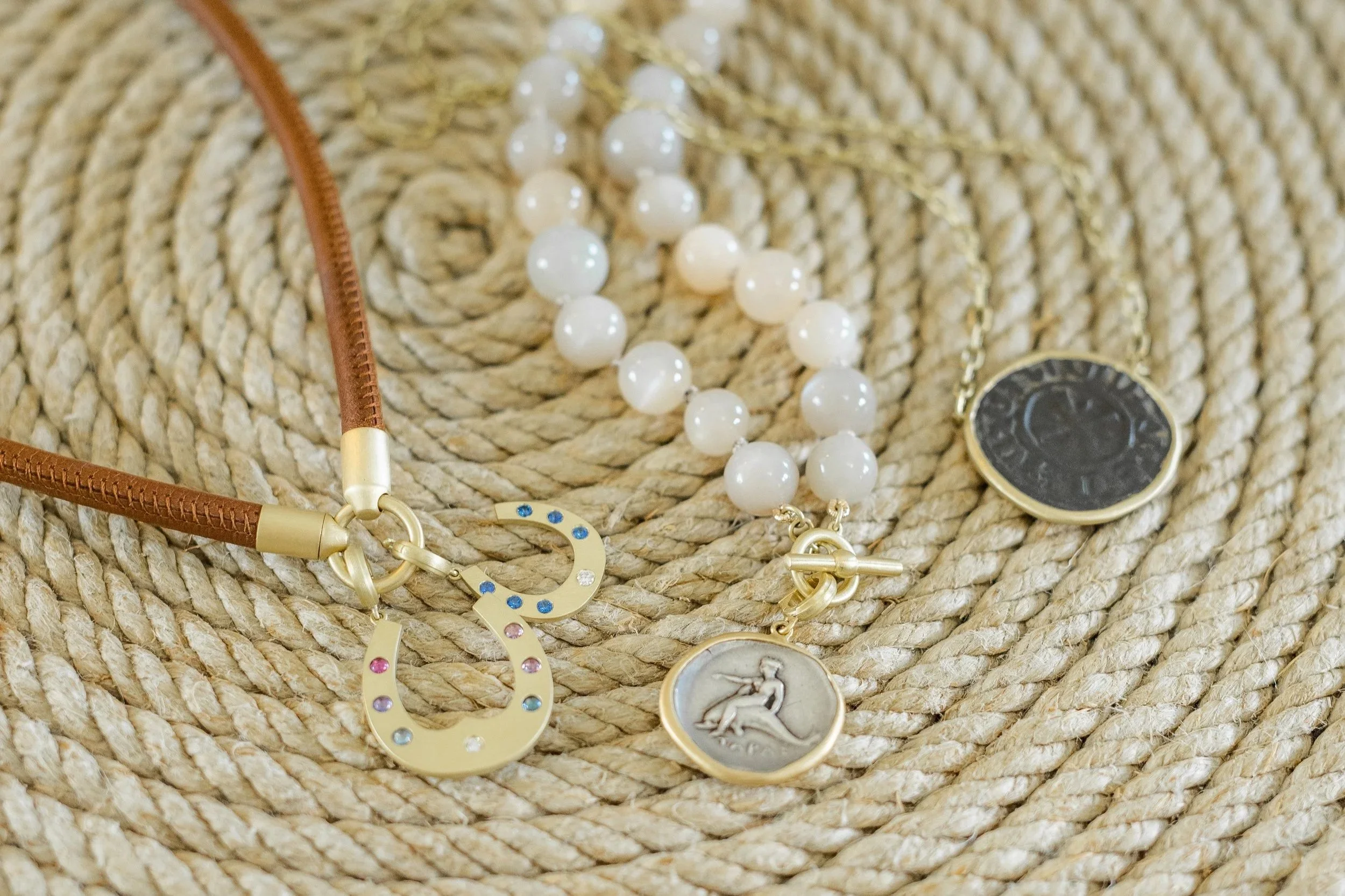 We love this leather cord because it’s a little bit rugged and a little bit polished. The thick stitched Nappa lamb leather comes in three colors, a buttery Light Brown, darker brown Chestnut, and rich wine Marsala. The opening bails on our pendants clip to the ring in the middle of the hardware, layering perfectly with your other necklaces and adding a touch of texture to your necklace stack.